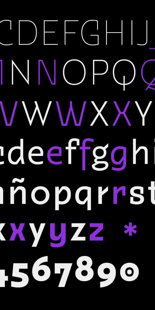 The concept behind the design responds to generating distinctive letterforms that enhance the message creating hierarchy and emphasis in the word. It has a character set with a great variety of alternative characters, which offer different composition possibilities.